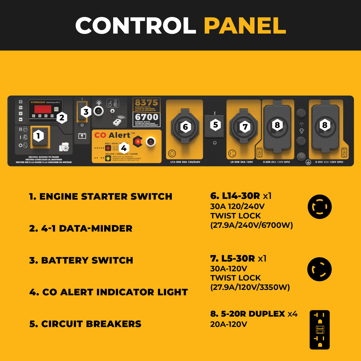 - (1) L14-30R 120V/240V 30A TWISTLOCK (25A/240V/6000W)