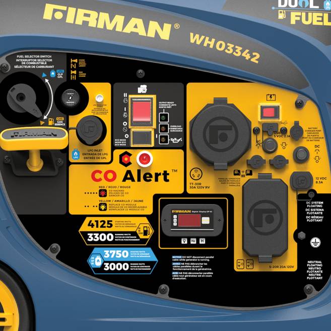 - Running watts 3300W (GAS), 3000W (LPG)