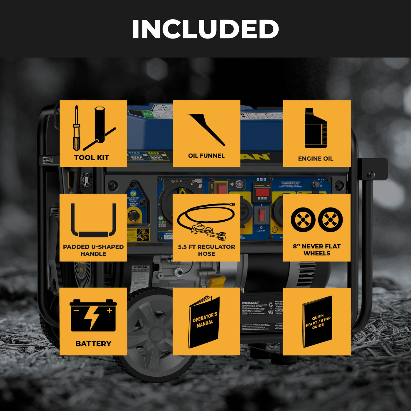 - Starting watts 7850W (GAS), 7100W (LPG). 6250W (NG)